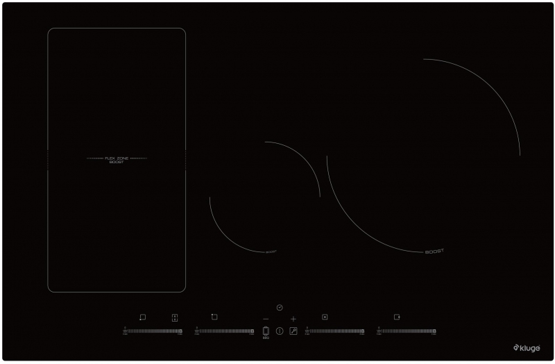 Indukční varná deska 80 cm široká; povrch z černého skla; dotykové ovládání se sliderem pro nastavení výkonu; 9 úrovní výkonu + udržování v teple; 4 varné zóny z toho Flexi zón: 1; Průměr levé přední zóny: 18x18 cm, výkon: 2000 W (Boost 2600 W), průměr levé zadní zóny: 18x18 cm, výkon: 1500 W (Boost 2000 W), průměr prostřední zóny: 16 cm, výkon: 1500 W (Boost 1800 W), průměr pravé zóny: 28 cm, výkon: 2000 W (Boost 3000 W); Celkový příkon: 7400 W; Booster; Časovač; Detekce nádobí; Indikace zbytkového tepla; Zámek ovládacího panelu + dětský zámek; Aktivace/deaktivace flexibilní zóny / BBQ; Funce plancha/grilování; Rozměry (VxŠxH): 6 x 80 x 52 cm