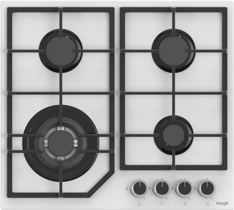 Plynová varná deska Kluge KPG6030WG s šířkou 60 cm nabízí praktické uspořádání hořáků a elegantní provedení pro každodenní vaření; Povrch z bílého tvrzeného skla působí čistě a moderně a zároveň umožňuje snadnou údržbu; Varná deska je vybavena čtyřmi plynovými hořáky různých výkonů pro flexibilní přípravu pokrmů; V levé zadní části je umístěn střední hořák s výkonem 2,0 kW vhodný pro běžné vaření; V levé přední části se nachází výkonný hořák s výkonem 3,4 kW, který je vhodný pro rychlé zahřátí a intenzivnější vaření; V pravé zadní části je umístěn další střední hořák s výkonem 2,0 kW; V pravé přední části se nachází malý hořák s výkonem 1,0 kW, ideální například pro pomalé zahřívání nebo přípravu menších porcí; Stabilitu nádobí zajišťují masivní litinové rošty; Ovládání je umístěno v přední části varné desky a probíhá pomocí otočných knoflíků s integrovaným automatickým zapalováním; Bezpečnost při používání zajišťuje systém Gas Stop, který automaticky uzavře přívod plynu v případě zhasnutí plamene; Varná deska je z výroby nastavena pro zemní plyn a součástí balení jsou také trysky pro přestavbu na LPG/PB; Rozměry varné desky jsou (VxŠxH): 9,7 x 58 x 52 cm