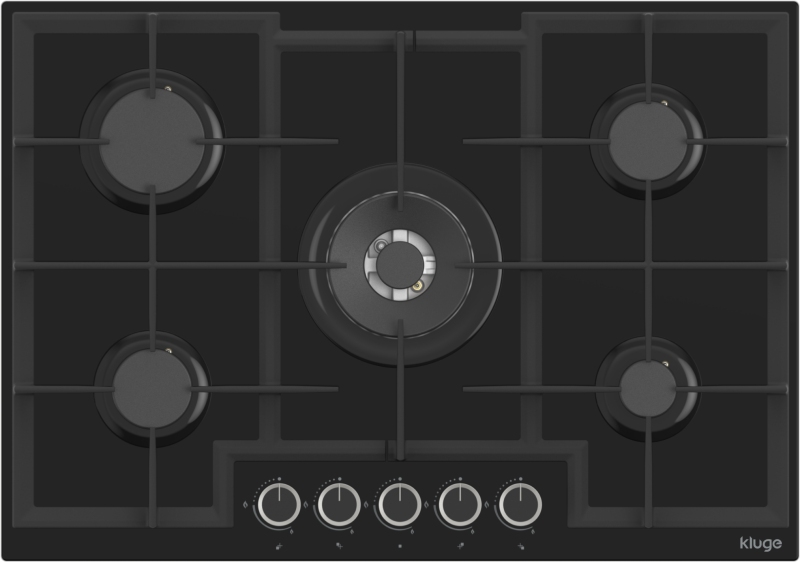 Plynová varná deska Kluge KPG7520BG s šířkou 75 cm nabízí kombinaci moderního designu, vysokého výkonu a praktického uspořádání hořáků pro pohodlné každodenní vaření; Povrch z černého tvrzeného skla působí elegantně a zároveň umožňuje snadnou údržbu; Varná deska je vybavena pěti plynovými hořáky různých výkonů, které poskytují dostatek flexibility při přípravě pokrmů; Dominantou varné desky je středový WOK hořák s vysokým výkonem 4,2 kW, ideální pro intenzivní vaření, rychlé restování nebo přípravu pokrmů ve wok pánvi; V levé zadní části je umístěn velký hořák s výkonem 2,9 kW vhodný pro větší hrnce nebo rychlé zahřátí pokrmů; V levé přední části se nachází střední hořák s výkonem 2,0 kW určený pro běžné každodenní vaření; Další střední hořák s výkonem 2,0 kW je umístěn v pravé zadní části varné desky; V pravé přední části se nachází malý hořák s výkonem 1,0 kW, který je ideální například pro pomalé zahřívání nebo přípravu menších porcí; Stabilitu nádobí zajišťují robustní litinové rošty, které poskytují pevnou oporu i pro větší hrnce a pánve; Ovládání je umístěno v přední části varné desky a probíhá pomocí otočných knoflíků s integrovaným automatickým zapalováním; Bezpečnost při používání zajišťuje systém Gas Stop, který automaticky uzavře přívod plynu v případě zhasnutí plamene; Varná deska je z výroby nastavena pro zemní plyn, součástí balení jsou však také trysky pro přestavbu na LPG/PB; Celkové rozměry varné desky jsou (VxŠxH): 9,6 x 74 x 52 cm