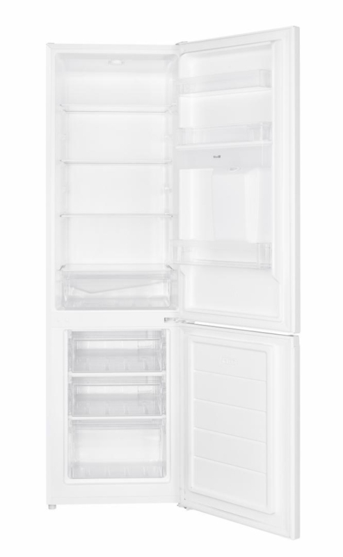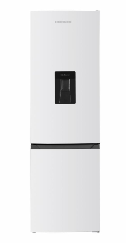 Kombinovaná lednice Heinner HC-HM260WDE++, energetická třída: E, celková kapacita: 260 l, objem chladničky: 189 l, objem mrazničky: 71 l, elektronické ovládání s nastavitelným termostatem, dávkovač vody, LED osvětlení, 3 skleněné police chladničky, zásuvka na ovoce a zeleninu, 3 mrazicí zásuvky, oboustranné dveře, přihrádka na vejce, přihrádka na led, mrazicí kapacita: 3,2 kg/24 h, rozměry (ŠxHxV): 55 x 56 x 180 cm, barva: Bílá