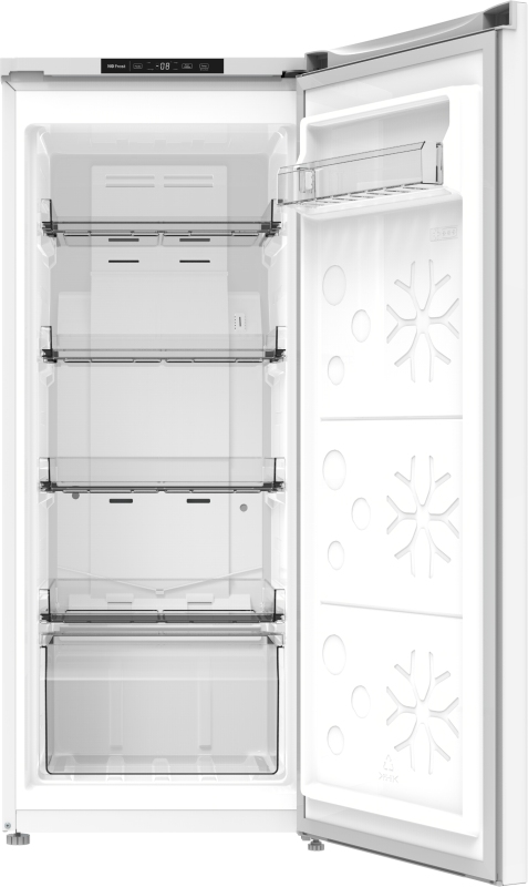 Praktické funkce zahrnují Super mrazení, dětský zámek, alarm otevřených dveří, alarm překročení teploty a poruchy a paměť při výpadku napájení, které zvyšují bezpečnost a spolehlivost provozu. Mrazicí výkon dosahuje 5,5 kg za 24 hodin a při výpadku elektrické energie udrží spotřebič teplotu až 5 hodin.
