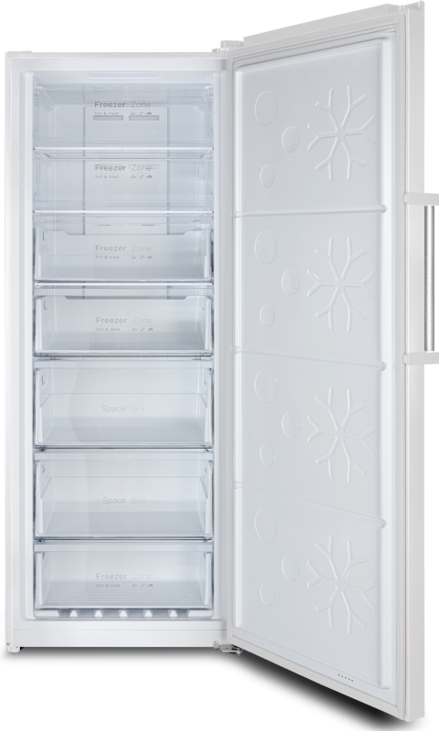 S celkovým objemem 380 litrů a přehledným vnitřním uspořádáním – 5 zásuvek a 2 horní přihrádky s výklopným čelem – poskytuje dostatek prostoru i snadnou organizaci uložených potravin. Mrazicí výkon dosahuje 18 kg za 24 hodin a v případě výpadku elektrické energie udrží vnitřní teplotu až 12 hodin.