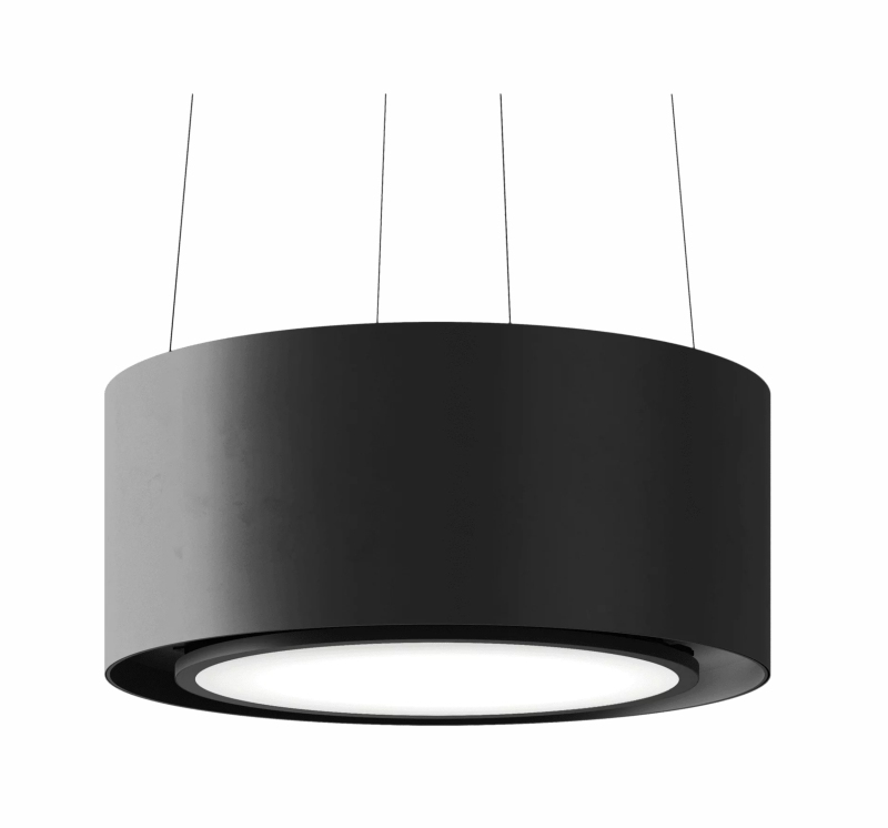 Ostrůvkový odsavač PIU LIGHT 80 Black z prémiové řady designových odsavačů Ciarko Design; Kombinace odsávání s moderním elegantním LED osvětlením; Provedení černý matný kov; Unikátní saténově hladký povrch, který dodává kuchyni stylový vzhled; Moderní design: Nabízí elegantní a moderní vzhled, který doplní různé styly kuchyní; Anti Fingerprint povrch: Saténový povrch, který odolává otiskům prstů a nečistotám a snadno se čistí; Ručně malovaný, třívrstvý nátěr pro větší odolnost a estetický vzhled; Velký světelný panel poskytuje rovnoměrné a intenzivní osvětlení nad varnou plochou; LED Warm2Cold osvětlení: Nastavitelná teplota světla od 2900K (teplé) do 6000K (chladné), což zlepšuje vzhled a funkčnost vaší kuchyně; Instalace na recirkulaci; Long Life filtry z aktivního uhlíku pro režim recirkulace: Odolné filtry Long Life M/P, snadná instalace shora s životností až 3 roky, regenerovatelné každých 4-6 měsíců a vhodné do myčky nádobí; Tichý, úsporný, výkonný a spolehlivý BLDC (invertorový) motor s dlouhou životností; GestureControl: Bezdotykové ovládání digestoře: osvětlení a rychlosti ventilátoru; Dodává se s dálkovým ovládáním pro větší pohodlí; 4 stupně intenzity odsávání včetně BOOST; Kompatibilita s indukčními varnými deskami Ciarko Design; Výkon odtahu ve standardním režimu 180 - 360 m3/h; Výkon odtahu v režimu BOOST až 640 m³/h; Hlučnost ve standardním režimu 41-56 dB; Hlučnost v režimu BOOST až 67 dB; Energetická třída A+; Roční spotřeba energie 37 kWh; Rozměry (VxŠ): max 285,6 x 80 cm