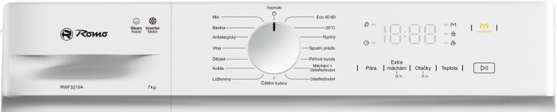 Tato pračka s předním plněním zvládne najednou vyprat až 7 kg prádla. Patří do energetické třídy A a má možnost regulovat rychlost odstřeďování až do 1200 ot./min. Snadné ovládání pomocí dotykového panelu v češtině s LED displejem a otočným voličem. Je vybavena invertorovým motorem, který je tichý, úsporný a spolehlivý. Díky speciální funkci M-Rychlý start, dokáže pračka automaticky detekovat hmotnost prádla a přizpůsobit tak dobu a teplotu praní. Pračka nabízí 15 programů / 6 teplot pro různé druhy prádla: např. Péřová bunda, Dětské, Košile, Lůžkoviny, Antialergický, Spodní prádlo nebo Barevné prádlo a také s podporou páry, která minimalizuje mačkání prádla a snižuje námahu při žehlení. Má také funkci odloženého konce až na 24h a dětského zámku. Systém kontroly vyvážení zajišťuje rovnoměrné rozložení prádla v bubnu. Spotřeba energie (100 cyklů) / vody (cyklus): 45kWh / 43l; Rozměry (VxŠxH): 84,7 x 60 x 48 cm; Hmotnost 52 kg.